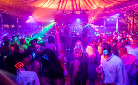 - Attendees choose between up to three different music channels on their wireless headphones.